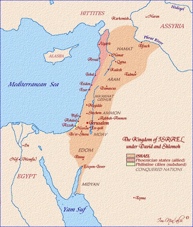 We see promises as prophecy in Genesis coming to pass concerning the nation of Israel. After Joshua comes Judges then kings. Saul, the first King from Benjamin falls from Grace and now King David comes to power and all 12 tribes are united under him. We see “Judah” The House of David” the Messianic line comes into history. The promised “King of Kings” will come from David. The promise of Israel and the land is forever linked with the House of David. • About 1400 BC Israel is ruled by judges – not kings